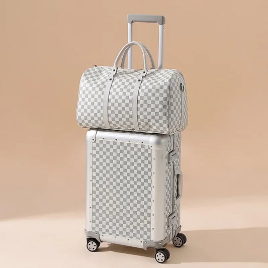 Luxury Checkerboard Metallic Design Aluminum Luggage Set for Business & Leisure Travel 20" Carry-On Suitcase